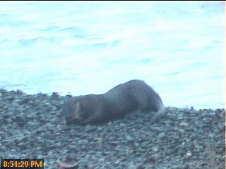 A sea otter enjoys a crab dinner!