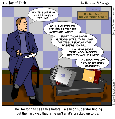 Welcome to the Joy of Tech... illustrated by Nitrozac and written by Nitrozac and Snaggy. It's a little bit simpler in style than our other comic After Y2K, and a little more topical. We hope you enJoy!