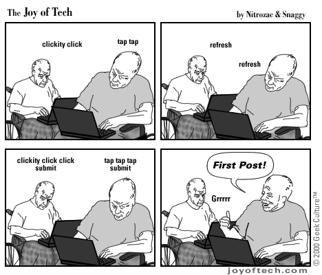 | Welcome to the Joy of Tech... our new daily comic, illustrated by Nitrozac and written by Nitrozac and Snaggy. It's a little bit simpler in style than After Y2K, and will be more topical, and we hope you'll enjoy it! |